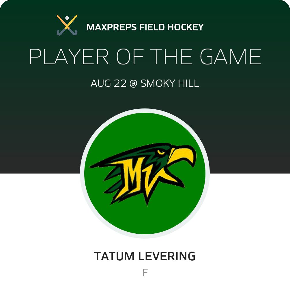 Congratulations to #25 Tatum Levering for being selected the Mountain Vista Field Hockey Player of the Game.