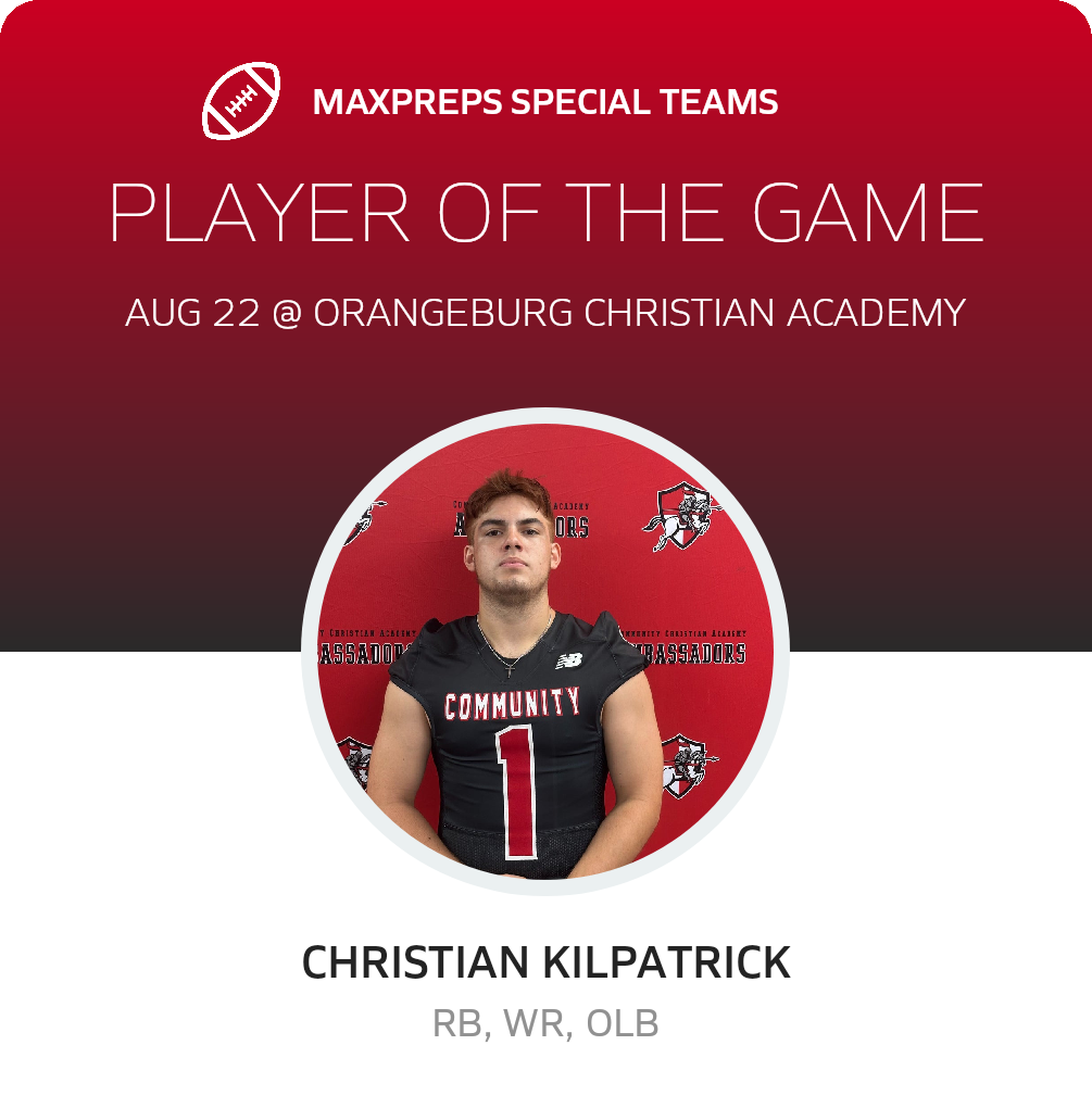 Next, the Ambassadors meet the Victory Christian Vikings (North Augusta, SC) in a CFA (8 Man) test, on Friday, September 5. Community Christian Academy will attempt to move on its 1-0 season record.