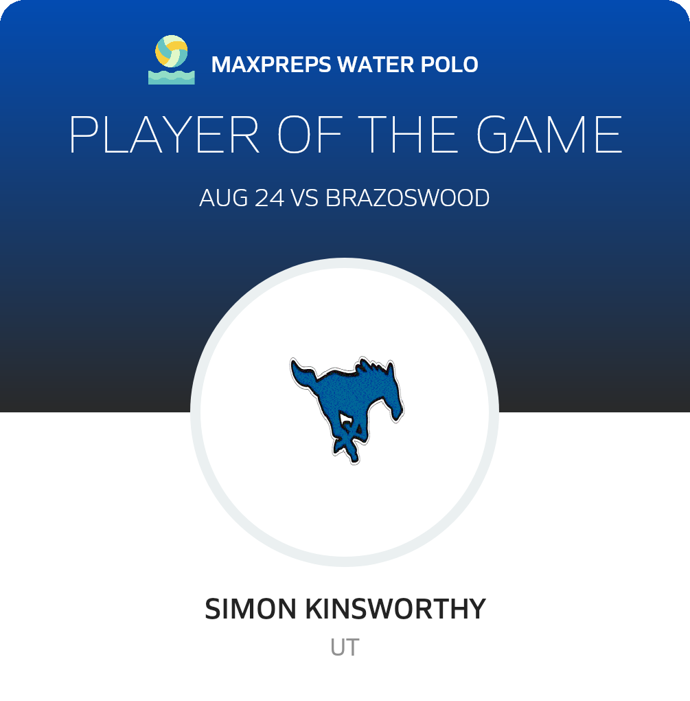 Congratulations to #13 Simon Kinsworthy for being selected the Friendswood Water Polo Player of the Game.