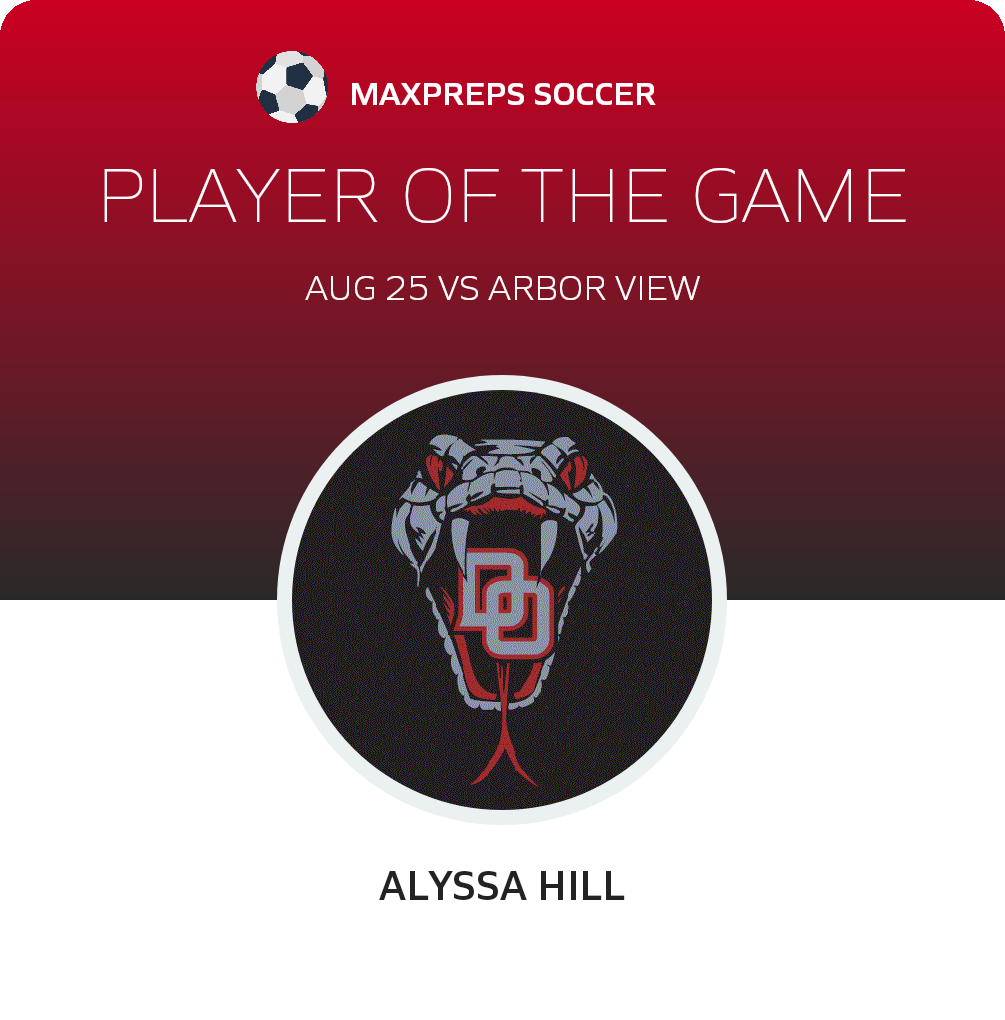 Congratulations to #21 Alyssa Hill for being selected the Desert Oasis Girls Soccer Player of the Match.