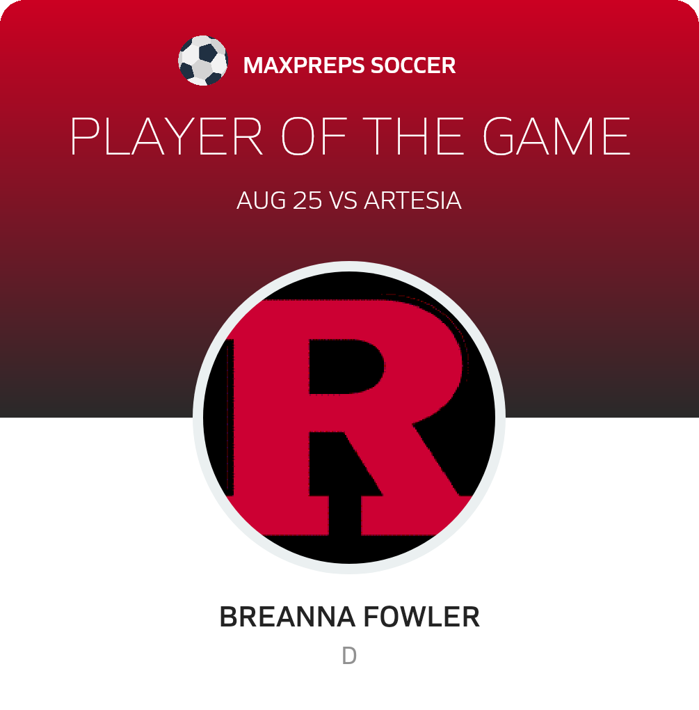 Congratulations to #9 Breanna Fowler for being selected the Roswell Girls Soccer Player of the Match.