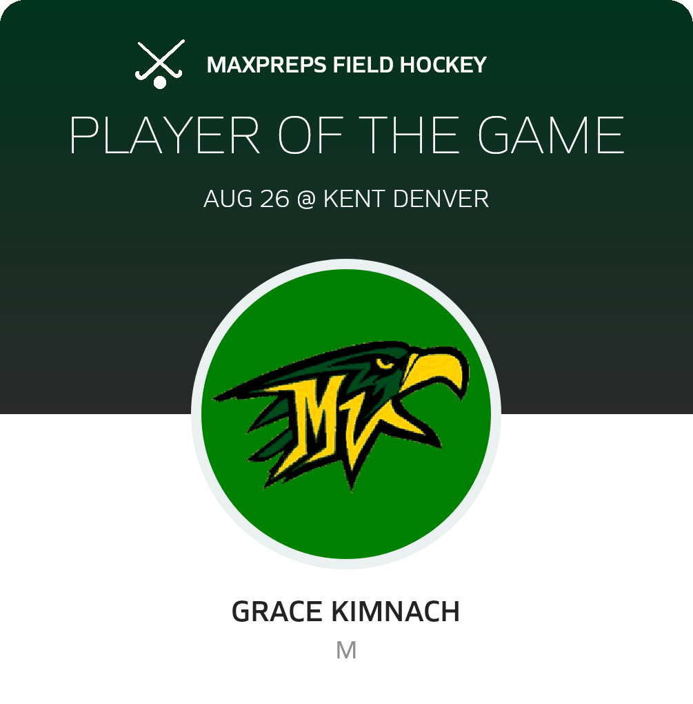 Congratulations to #4 Grace Kimnach for being selected the Mountain Vista Field Hockey Player of the Game.