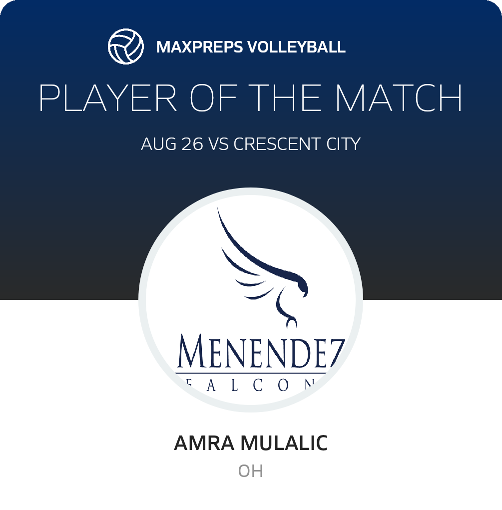Next up, the Falcons encounter the Seabreeze Sandcrabs (Daytona Beach, FL) in a non-league battle, on Thursday, August 28. Menendez will attempt to improve on its 3-0 season record. The Sandcrabs go into the battle with a 3-0 record after their 3-1 non-league win over Father Lopez (Daytona Beach, FL).