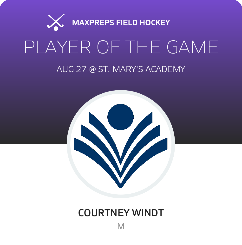 Congratulations to #28 Courtney Windt for being selected the Boulder Valley School District Field Hockey Player of the Game.