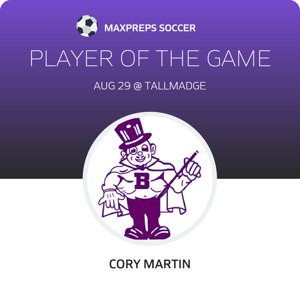 Congratulations to #15 Cory Martin for being selected the Barberton Soccer Player of the Match.