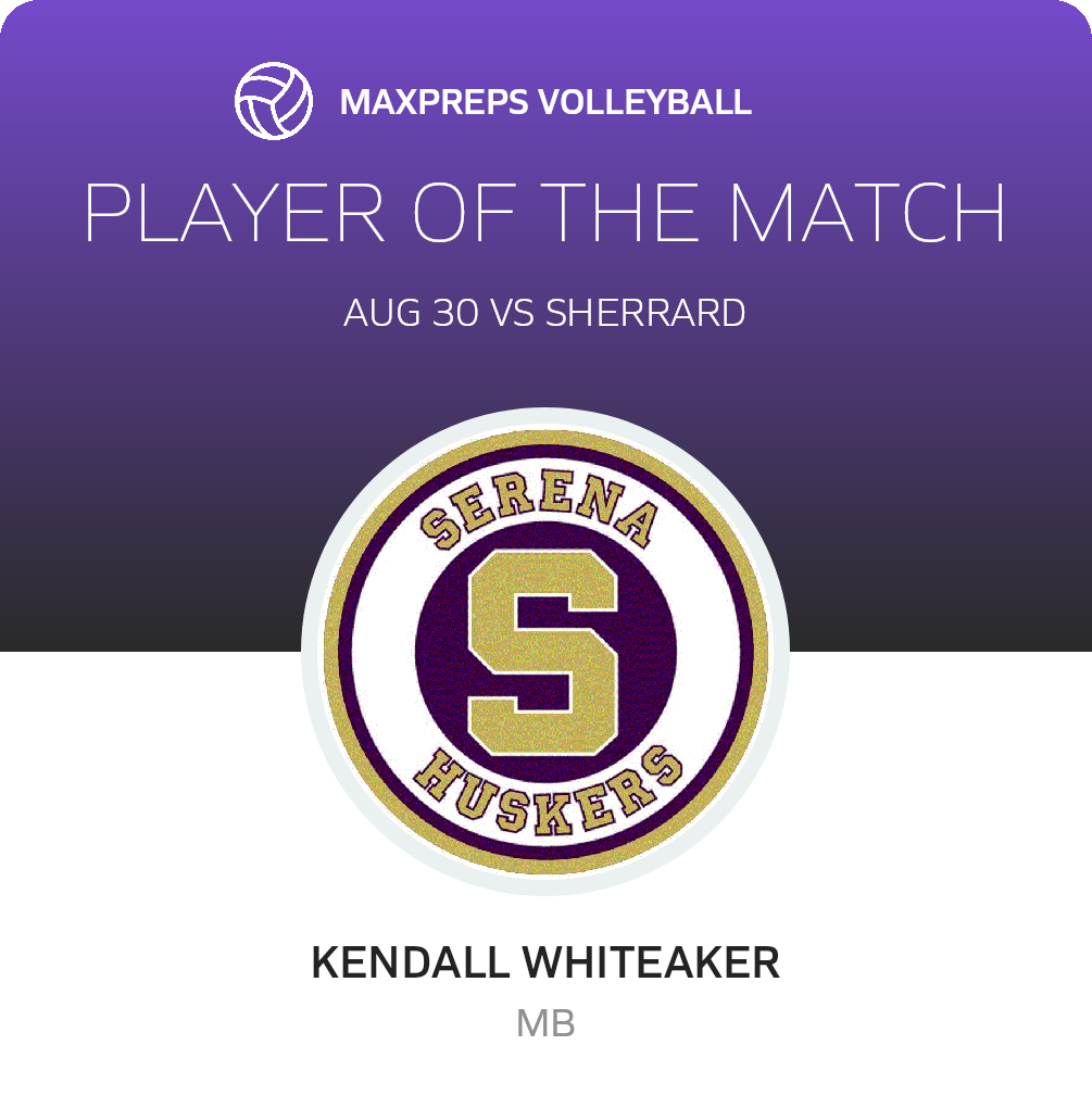 Congratulations to #17 Kendall Whiteaker for being selected the Serena Volleyball Player of the Match.