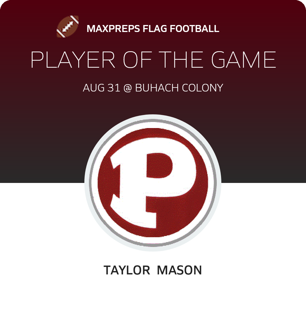 Congratulations to Taylor Mason for being selected the Patterson Girls Flag Football Player of the Game.