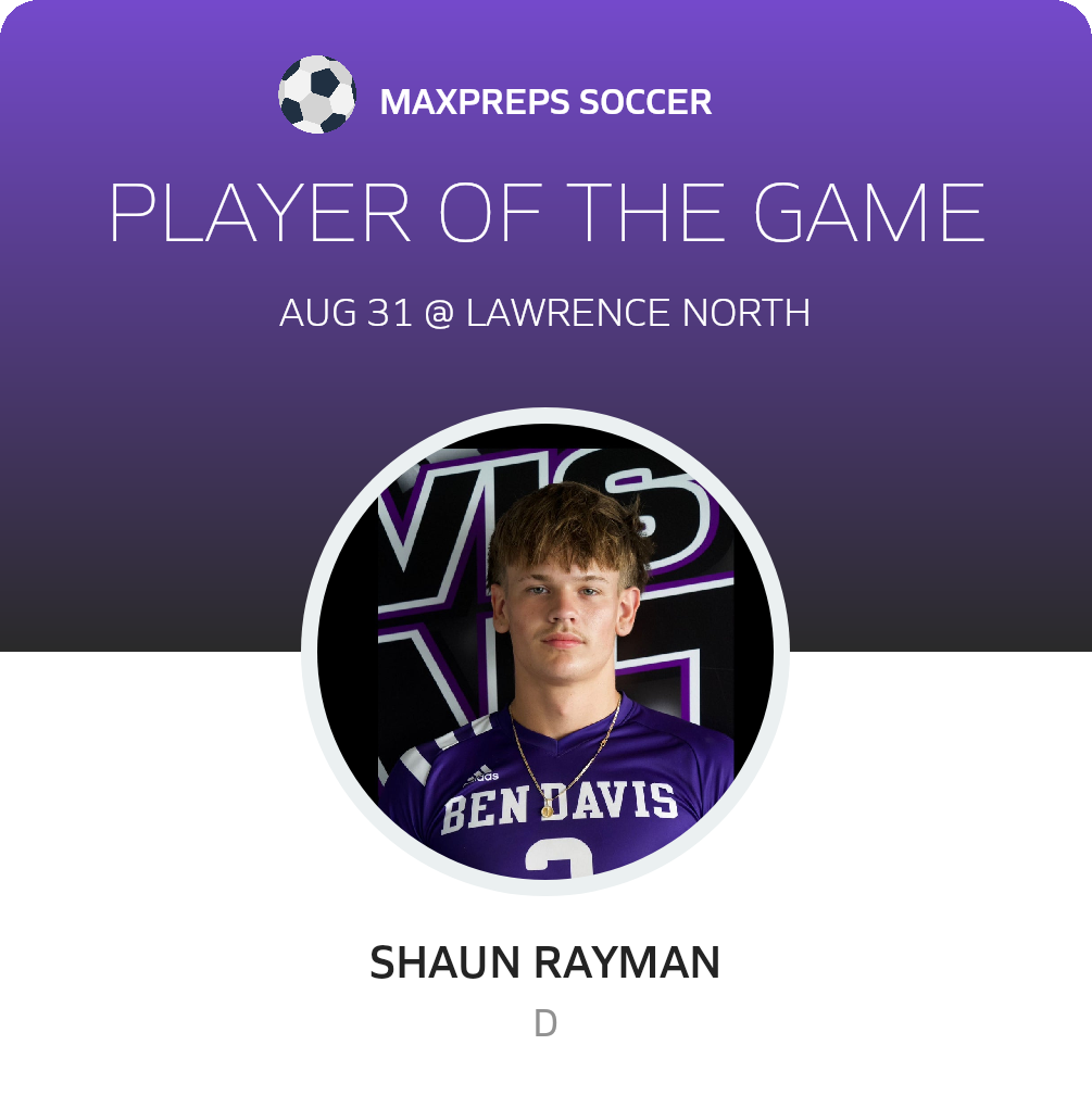 Congratulations to #3 Shaun Rayman for being selected the Ben Davis Soccer Player of the Match.