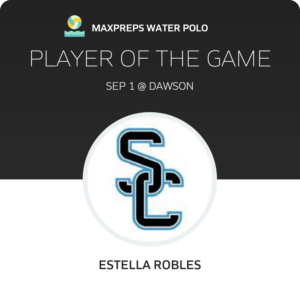Congratulations to #12 Estella Robles for being selected the Shadow Creek Girls Water Polo Player of the Game.