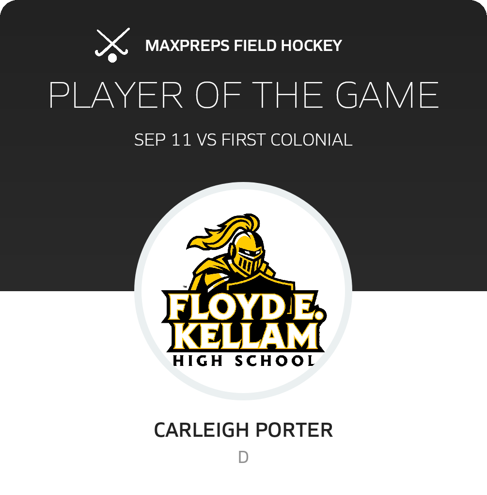 Congratulations to #18 Carleigh Porter for being selected the Kellam Field Hockey Player of the Game.
