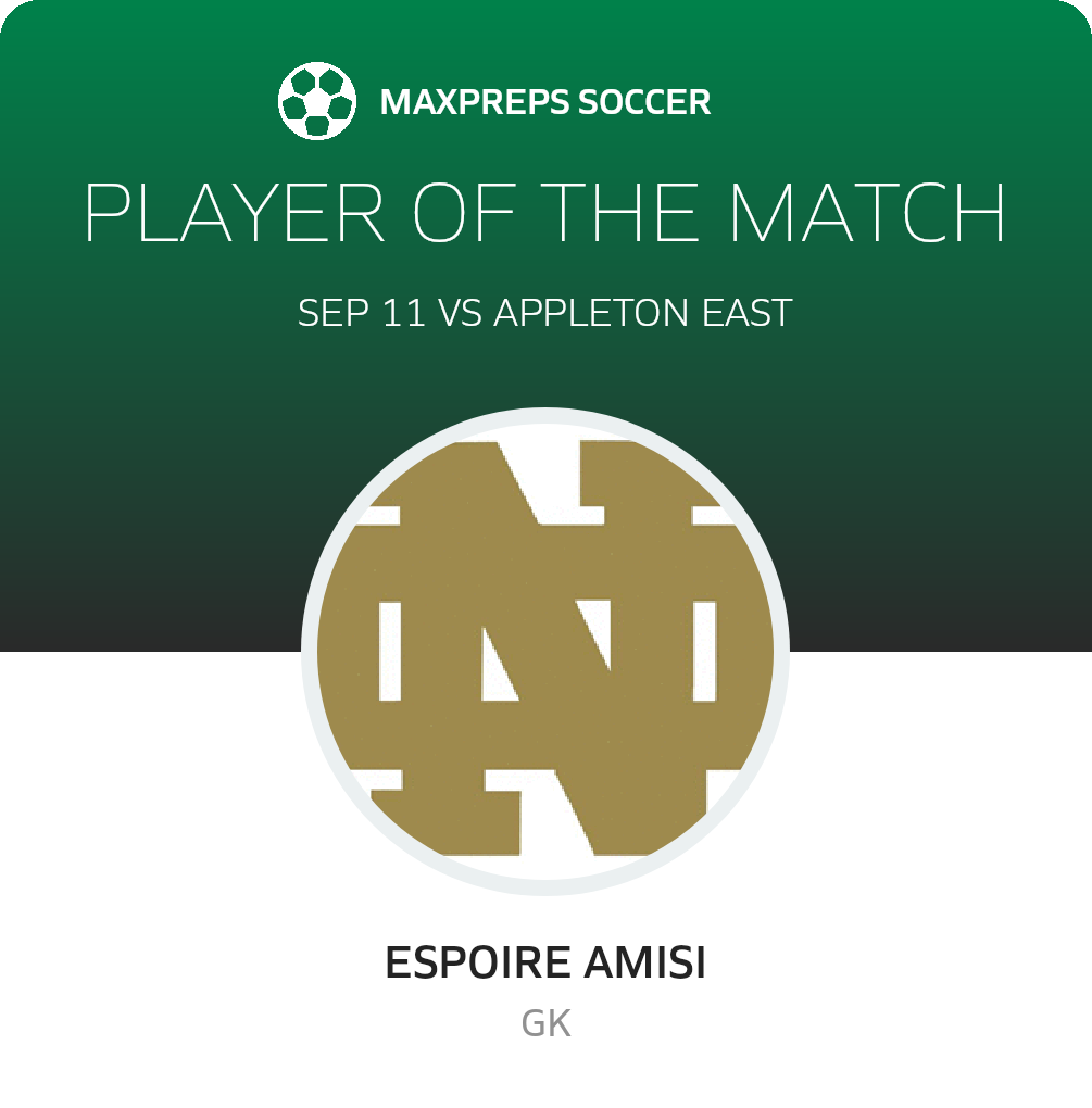 Congratulations to #00 Espoire Amisi for being selected the Oshkosh North Soccer Player of the Match.