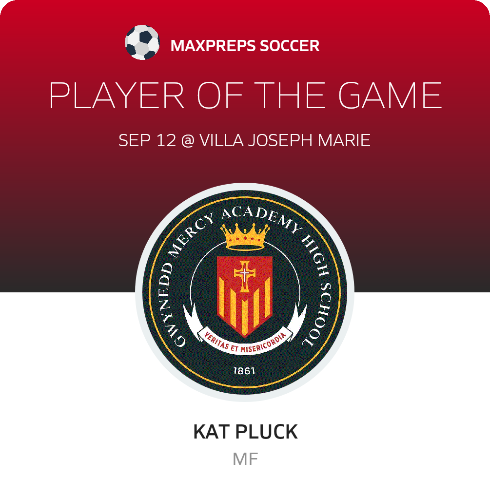 Congratulations to #24 Kat Pluck for being selected the Gwynedd Mercy Academy Girls Soccer Player of the Match.