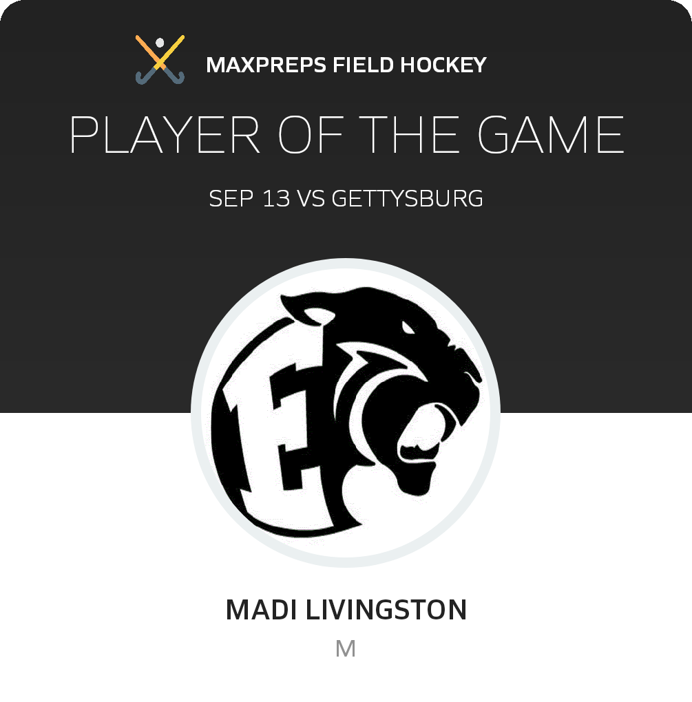 Congratulations to #32 Madi Livingston for being selected the Central Dauphin East Field Hockey Player of the Game.