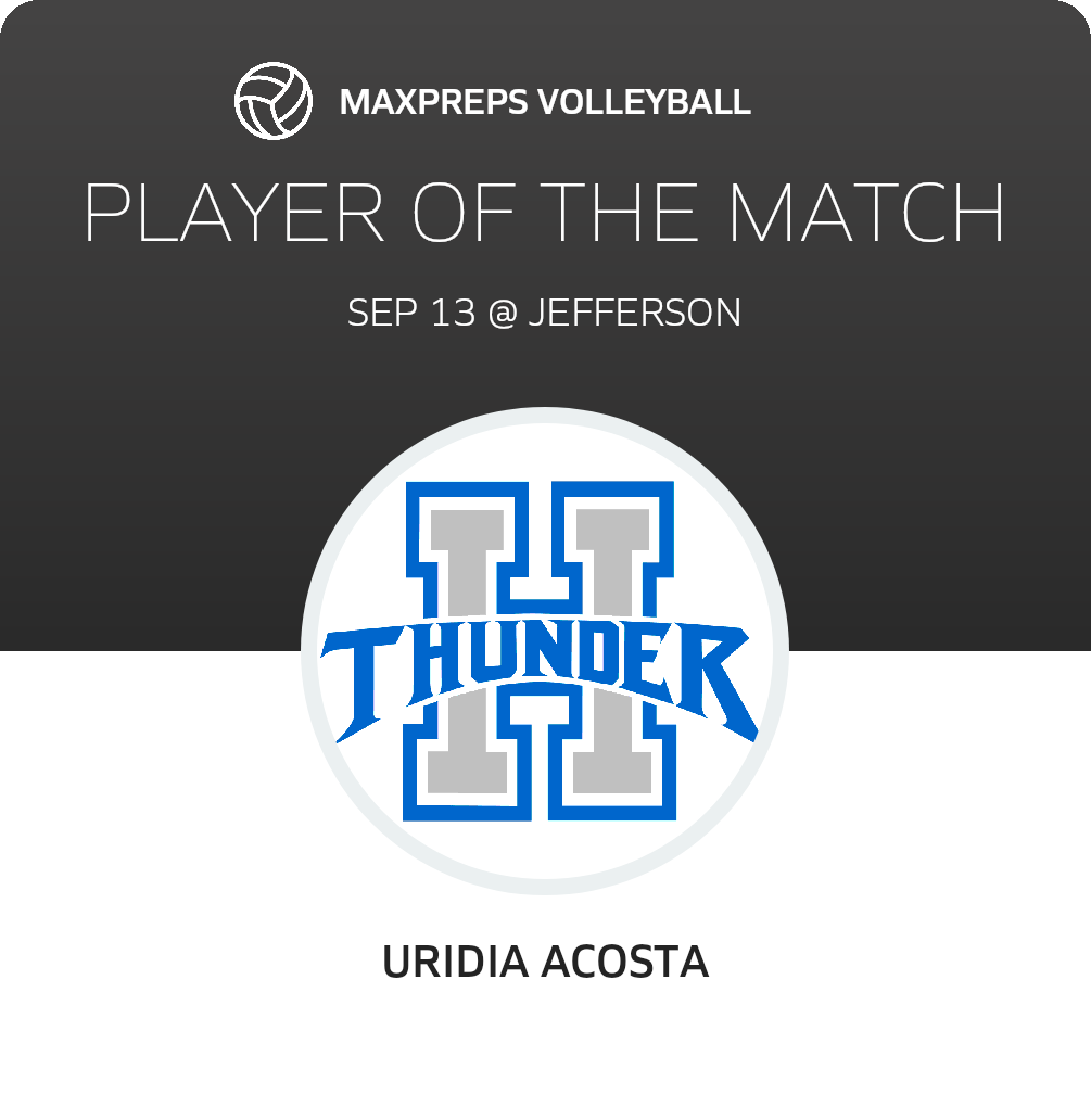 In Saturday's non-league match, the Hinkley Thunder (Aurora, CO) volleyball squad tipped the host Jefferson Saints (Edgewater, CO), by a count of 2-1.