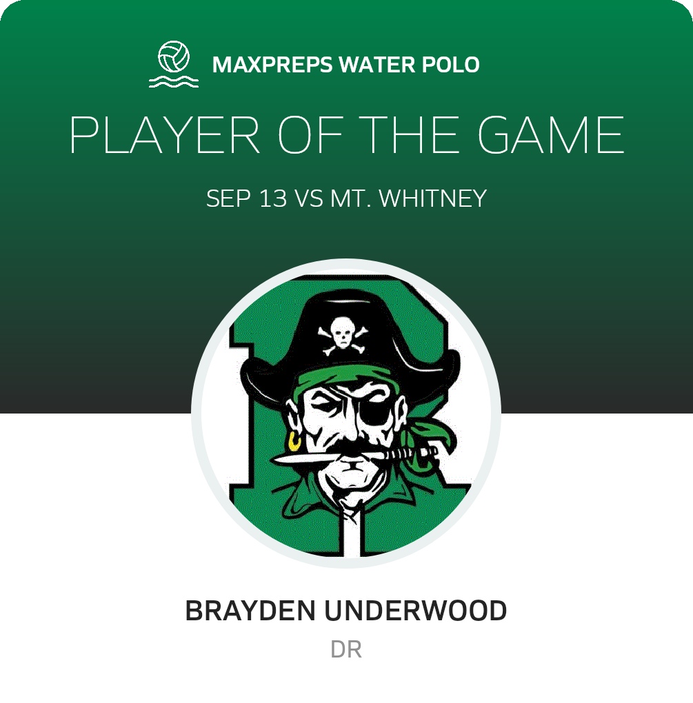 Congratulations to #3 Brayden Underwood for being selected the Reedley Water Polo Player of the Game.