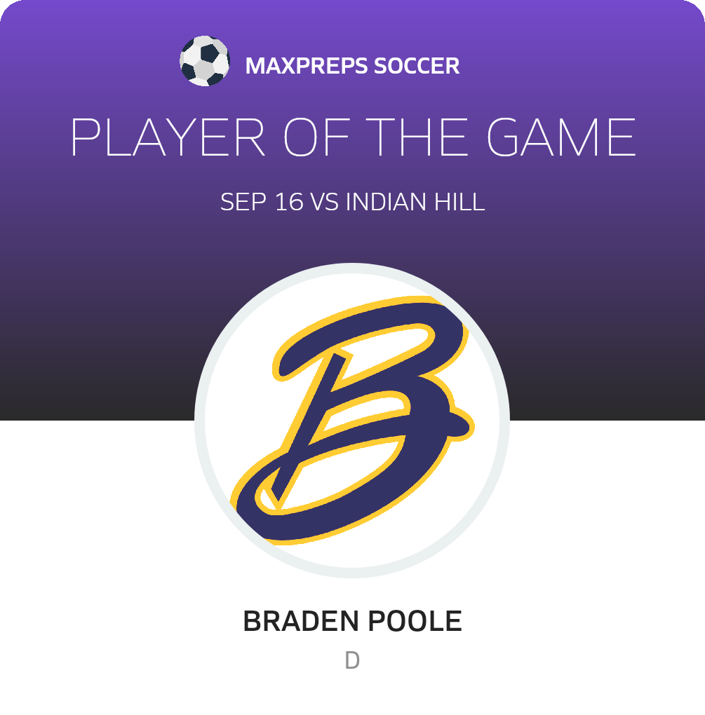The Indian Hill Braves (Cincinnati, OH) soccer the host Bellbrook Golden Eagles (Bellbrook, OH), 3-0 in Saturday's non-league bout.