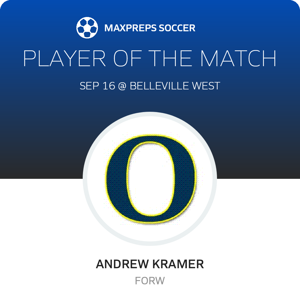 Congratulations to #14 Andrew Kramer for being selected the O'Fallon Soccer Player of the Match.