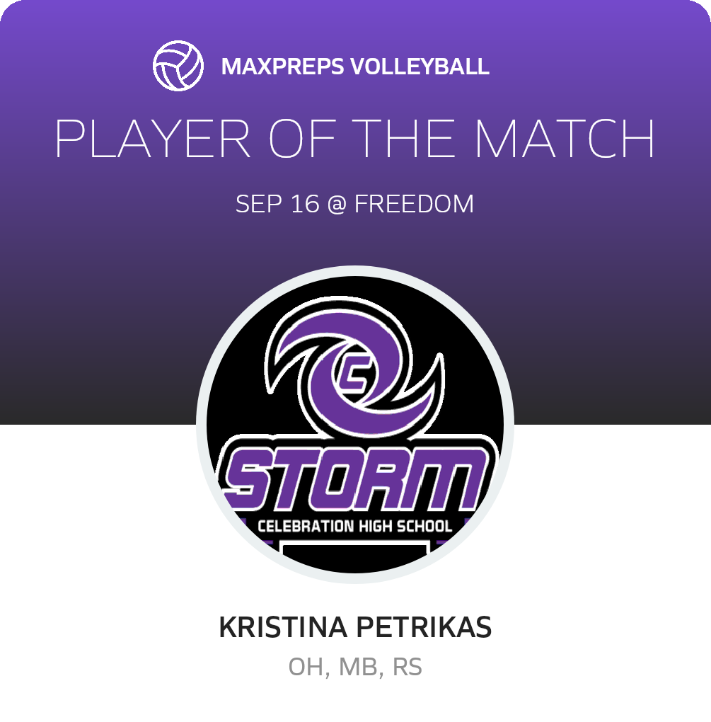 In Tuesday's non-league challenge, the visiting Celebration Storm volleyball team scored a 3-0 triumph over the Freedom Patriots.