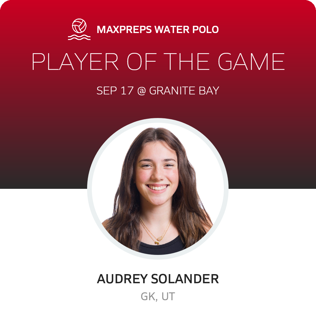 Congratulations to #1/10 Audrey Solander for being selected the St. Francis Girls JV Water Polo Player of the Game.
