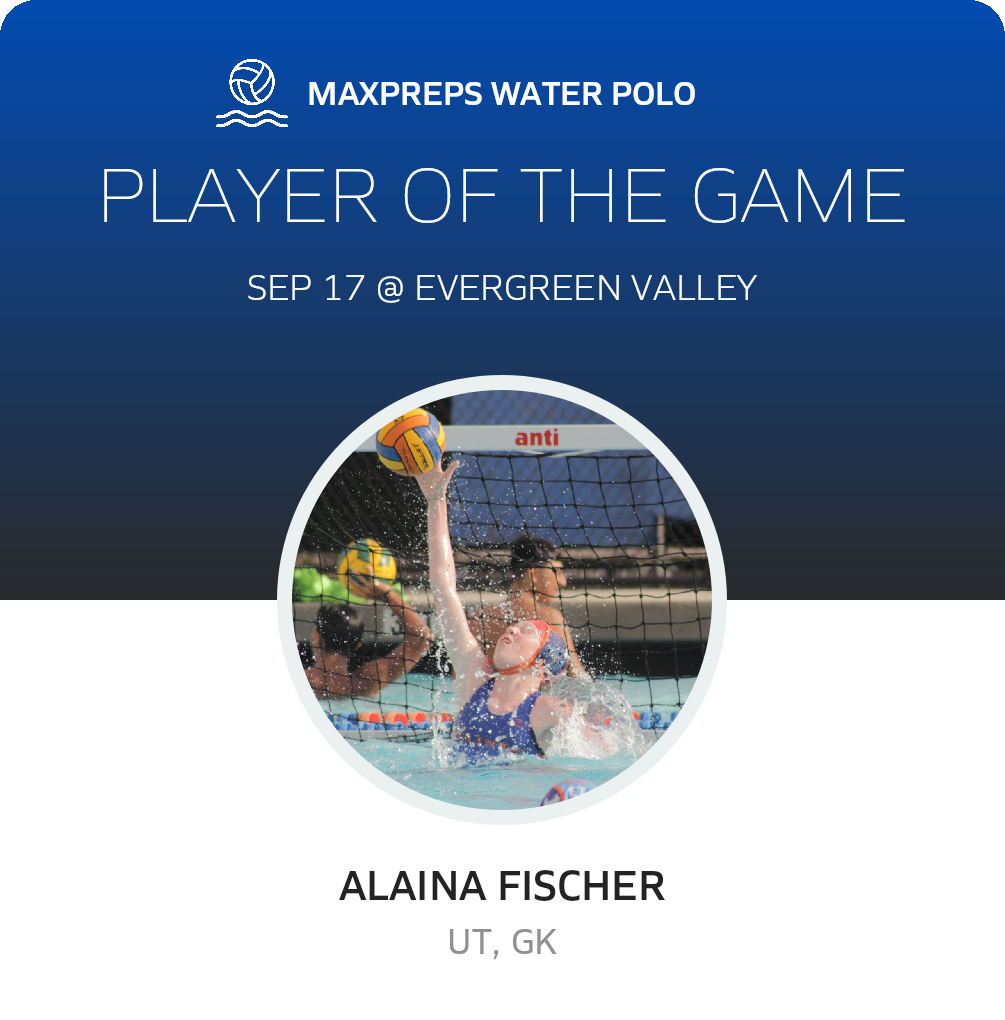 Congratulations to #21 Alaina Fischer for being selected the Santa Teresa Girls Water Polo Player of the Game.