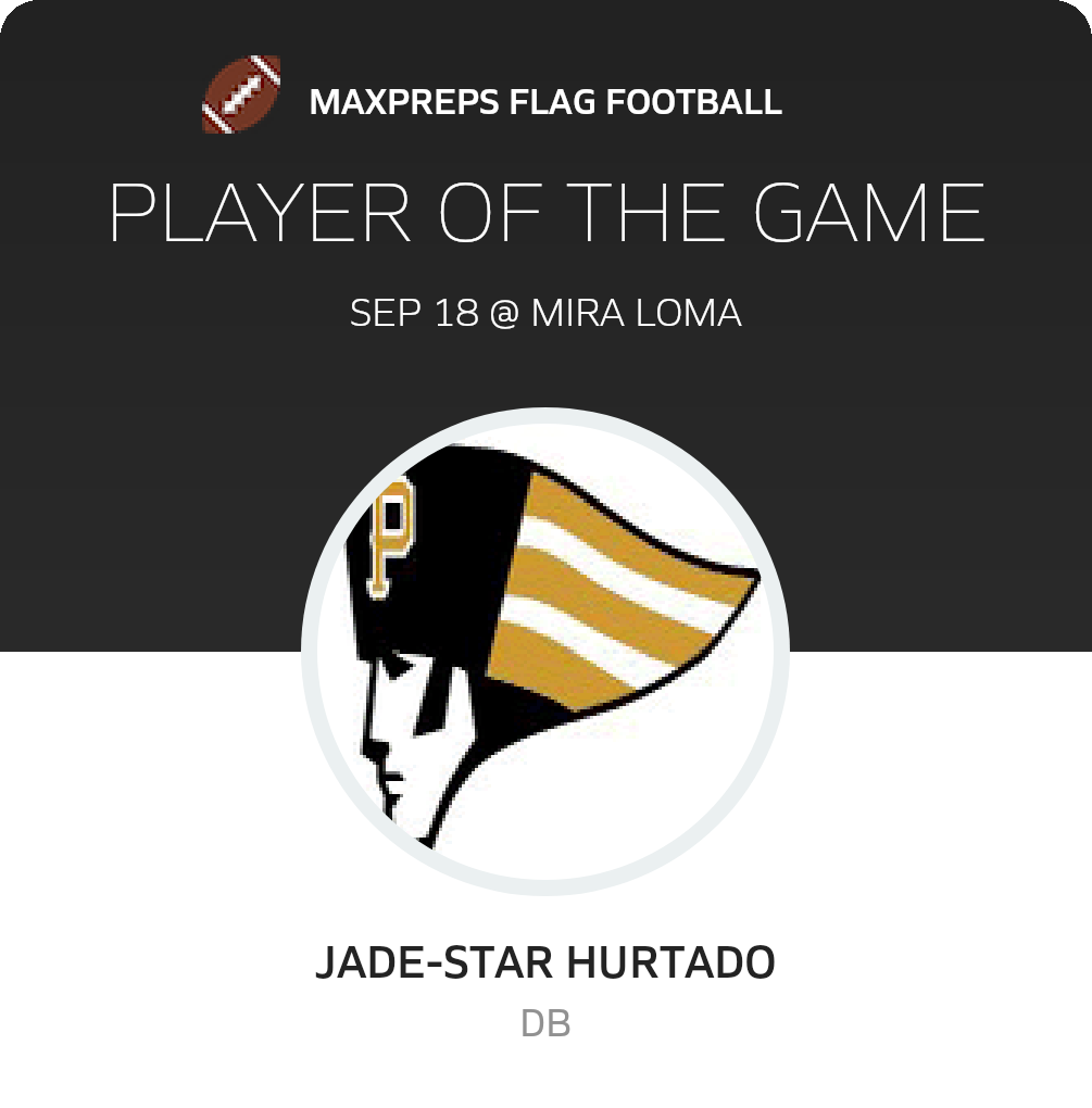 Congratulations to #62 Jade-Star Hurtado for being selected the Pioneer Girls Flag Football Player of the Game.