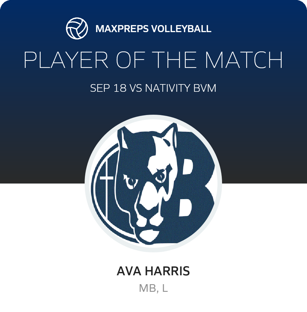 Congratulations to #5 Ava Harris for being selected the Bethlehem Christian Volleyball Player of the Match.