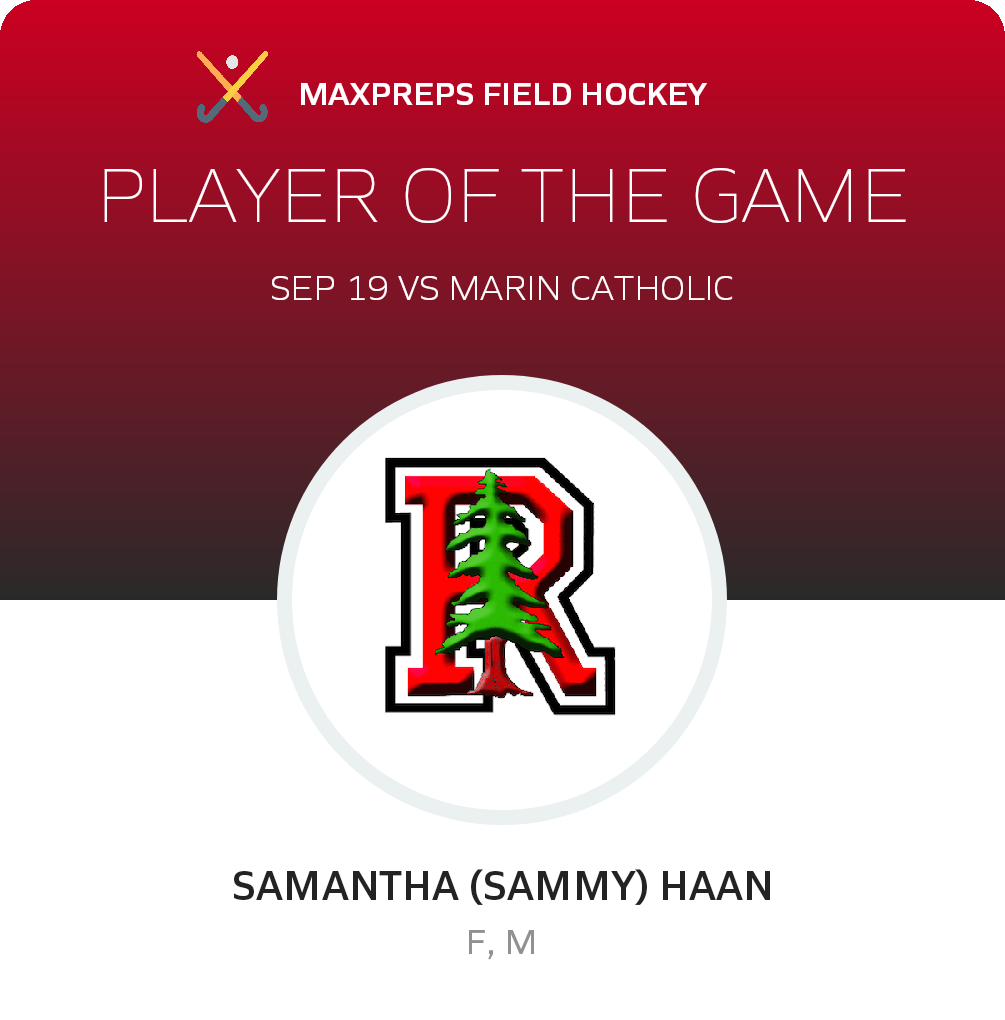 Congratulations to #9 Samantha (Sammy) Haan for being selected the Redwood Field Hockey Player of the Game.