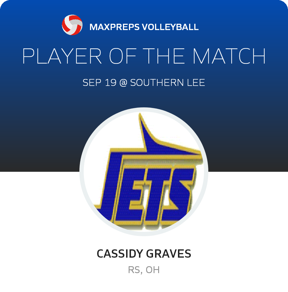 Congratulations to #16 Cassidy Graves for being selected the Jordan-Matthews JV Volleyball Player of the Match.