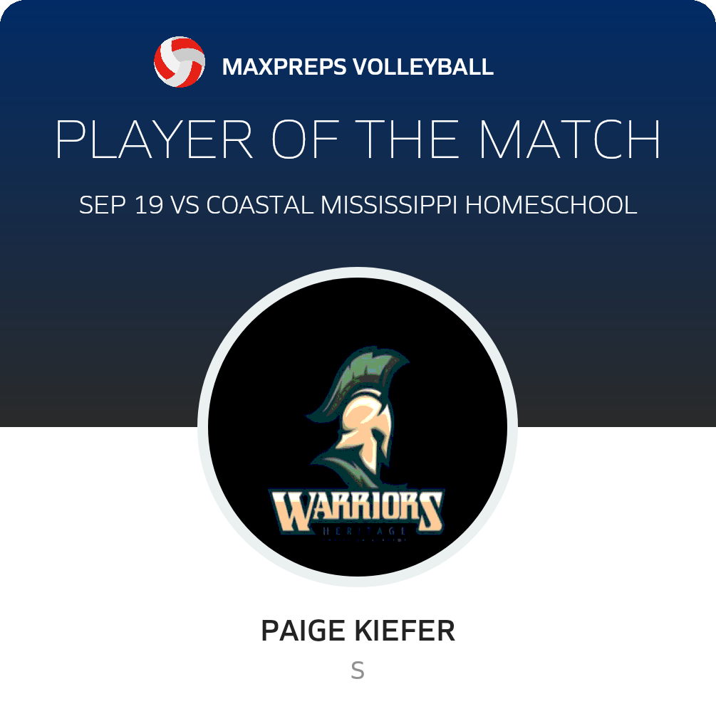 Congratulations to #2 Paige Kiefer for being selected the Heritage Christian Academy Volleyball Player of the Match.