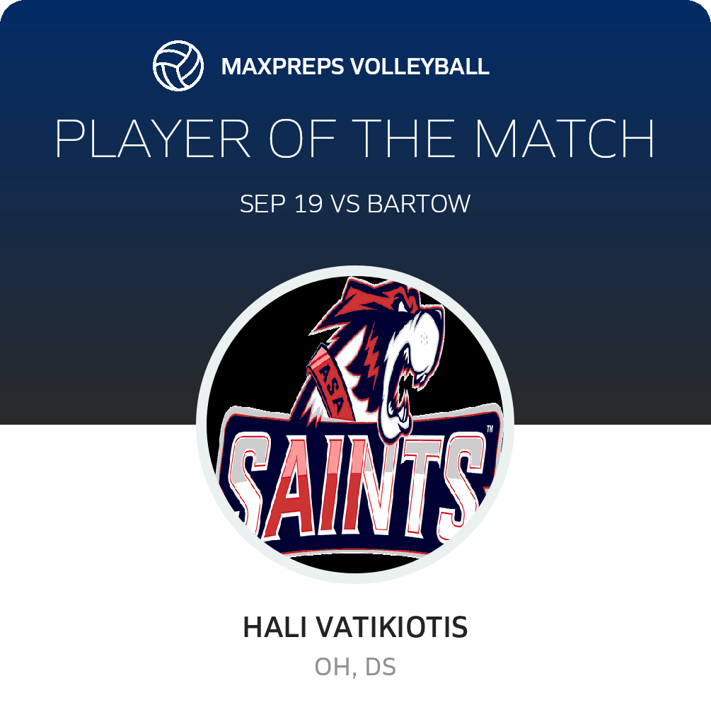 The Saints now own a 7-6 record. They put it on the line next when they travel to Winter Haven Christian for a non-league battle on Friday, September 19. All Saints' Academy will meet a Warriors team coming off a 3-0 league win over Florida College Academy (Temple Terrace, FL). The Warriors record now stands at 9-2.