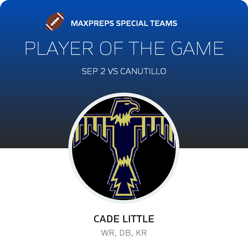 In their next game, the Eagles clash with the Austin Panthers (El Paso, TX) in a non-league match, on Friday, September 9. Canutillo will attempt to move on its 1-1 season record. The Panthers enter the match with a 0-2 record after their 9-7 non-league loss to Parkland (El Paso, TX).