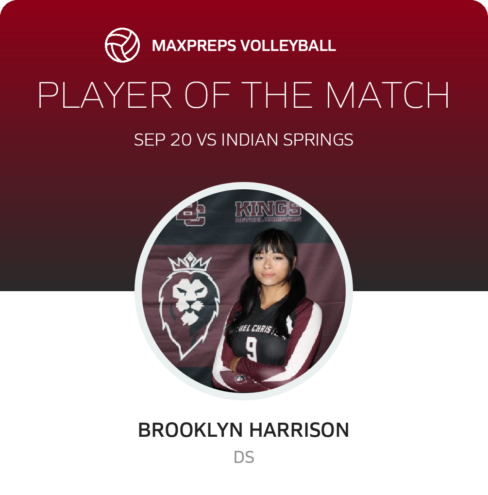 In Saturday's non-league match, the Indian Springs COYOTES (San Bernardino, CA) volleyball team knocked off the visiting Bethel Christian Kings (Riverside, CA), by a margin of 3-0.