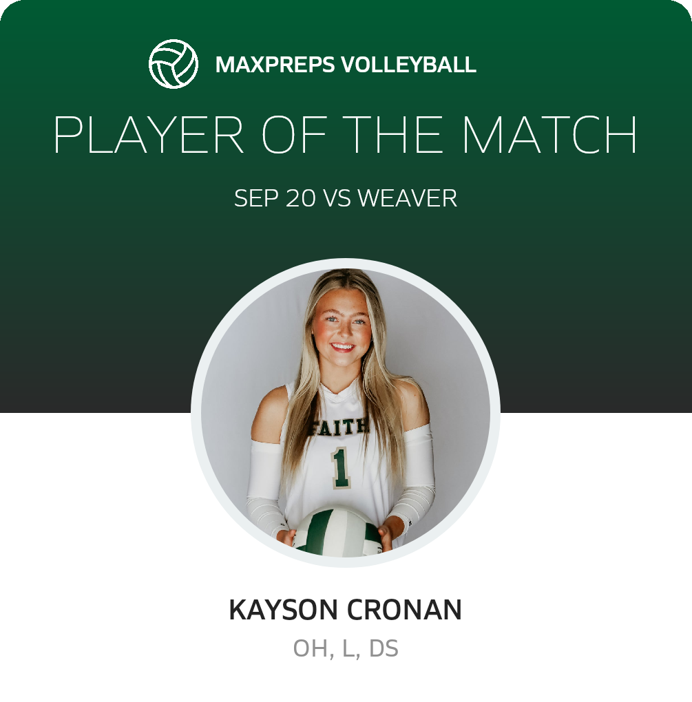 The Faith Christian Lions (Anniston, AL) volleyball knocked off the host Weaver Bearcats (Weaver, AL), 2-0 in Saturday's non-league bout.