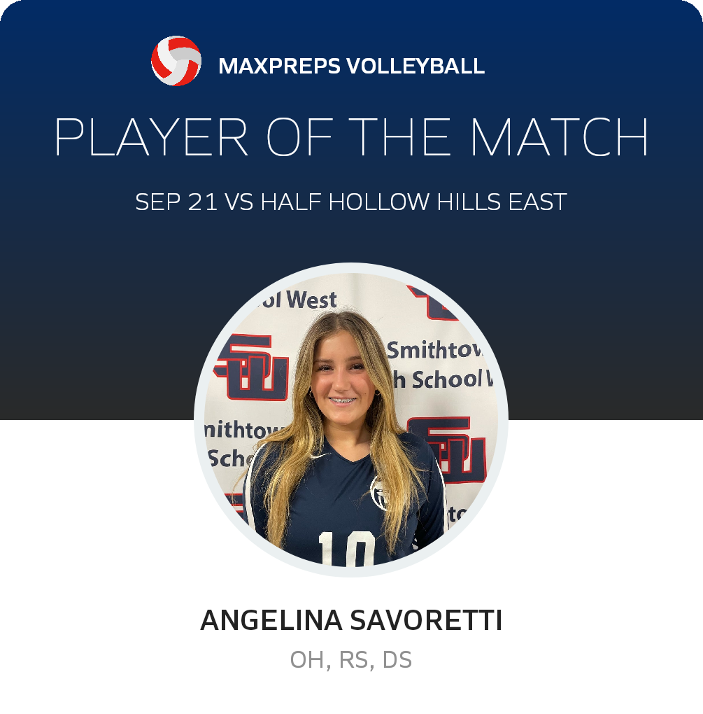 Kira Pirrera recorded 6 kills, 8 assists, 3 aces and 3 blocks to lead Smithtown West to a three set sweep of Half Hollow Hills East. Kamden Wheeler contributed 4 kills on 5 swings and Heather Dufficy added 3 aces as the Bulls run their League II record up to 6-0.
