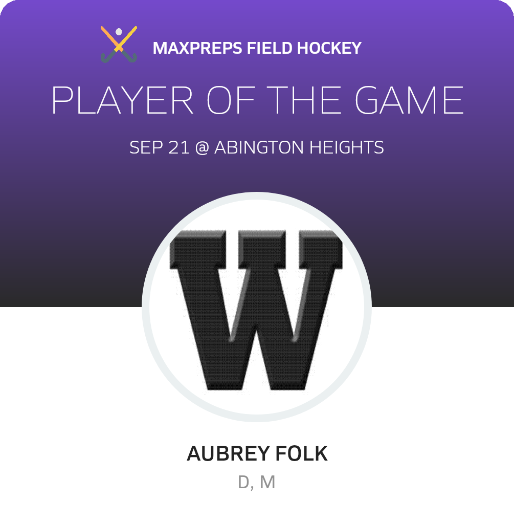 Congratulations to #23 Aubrey Folk for being selected the Wallenpaupack Area Field Hockey Player of the Game.