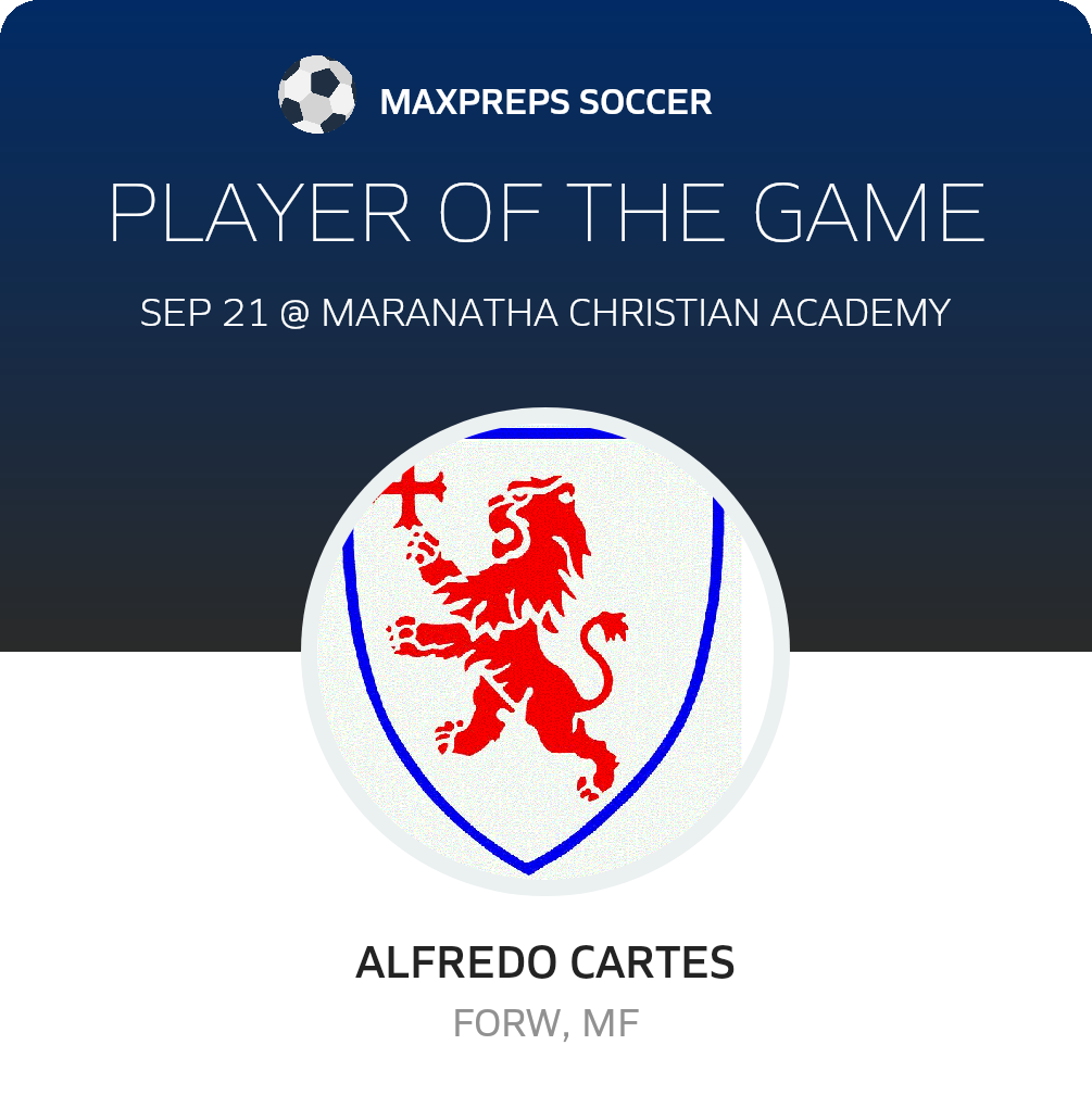Congratulations to #22 Alfredo Cartes for being selected the Cair Paravel Soccer Player of the Match.