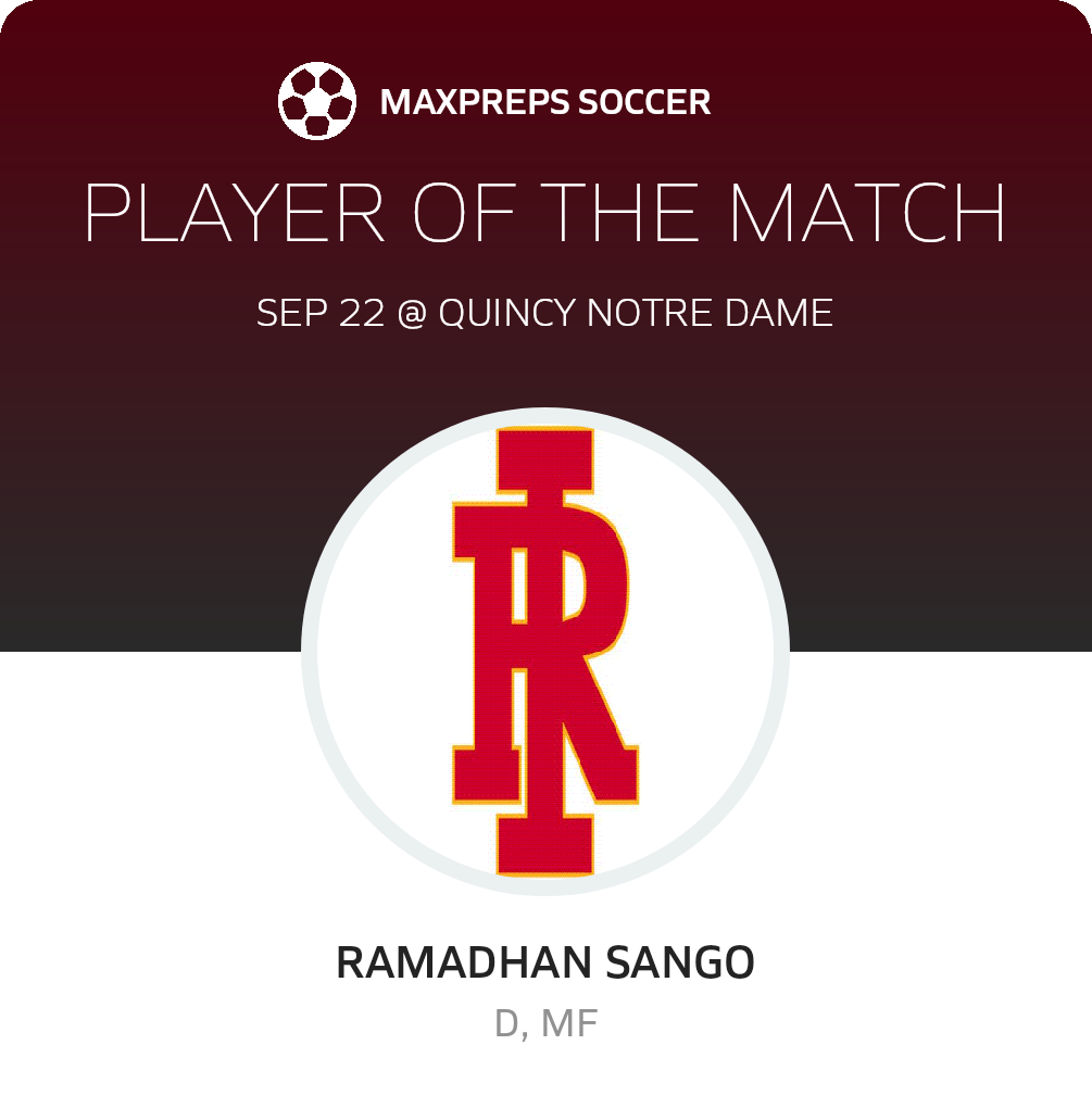 Congratulations to #14 Ramadhan Sango for being selected the Rock Island Soccer Player of the Match.