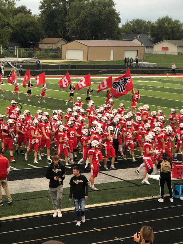 The crowd at Friday's league contest between the New Palestine Dragons (New Palestine, IN) and the visiting Greenfield-Central Cougars (Greenfield, IN), observed New Palestine's football squad bounce Greenfield-Central by a count of 42-7.