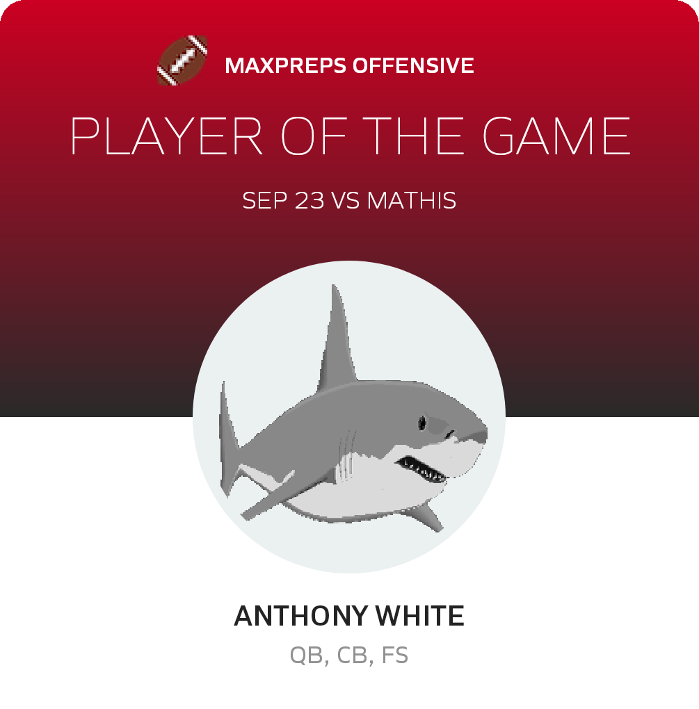 In their next game, the Sharks face the Aransas Pass Panthers (Aransas Pass, TX) in a 3A-1 Region IV District 15 bout, on Friday, September 30. Palacios will attempt to advance on its 1-4 season record. The Panthers enter the bout with a 1-4 record after their 38-6 league loss to London (Corpus Christi, TX).