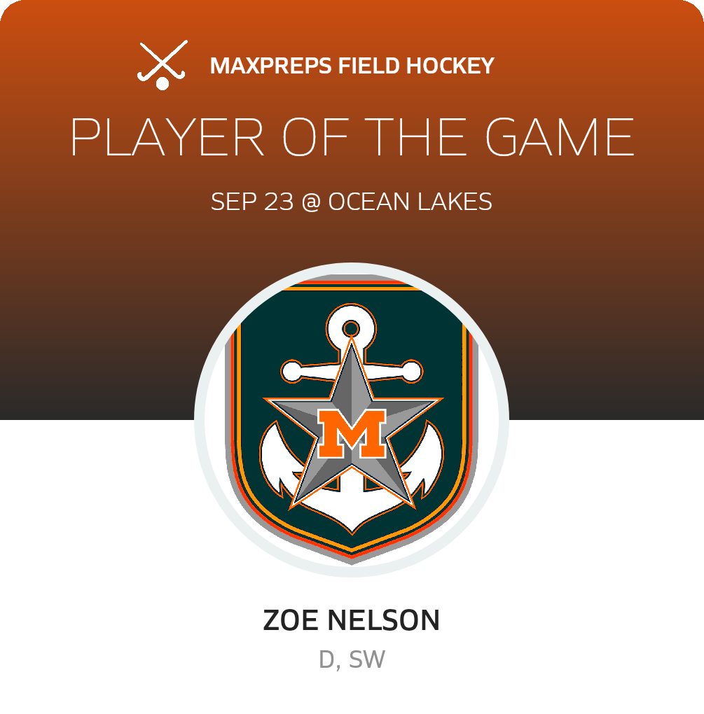 Congratulations to #16 Zoe Nelson for being selected the Maury Field Hockey Player of the Game.