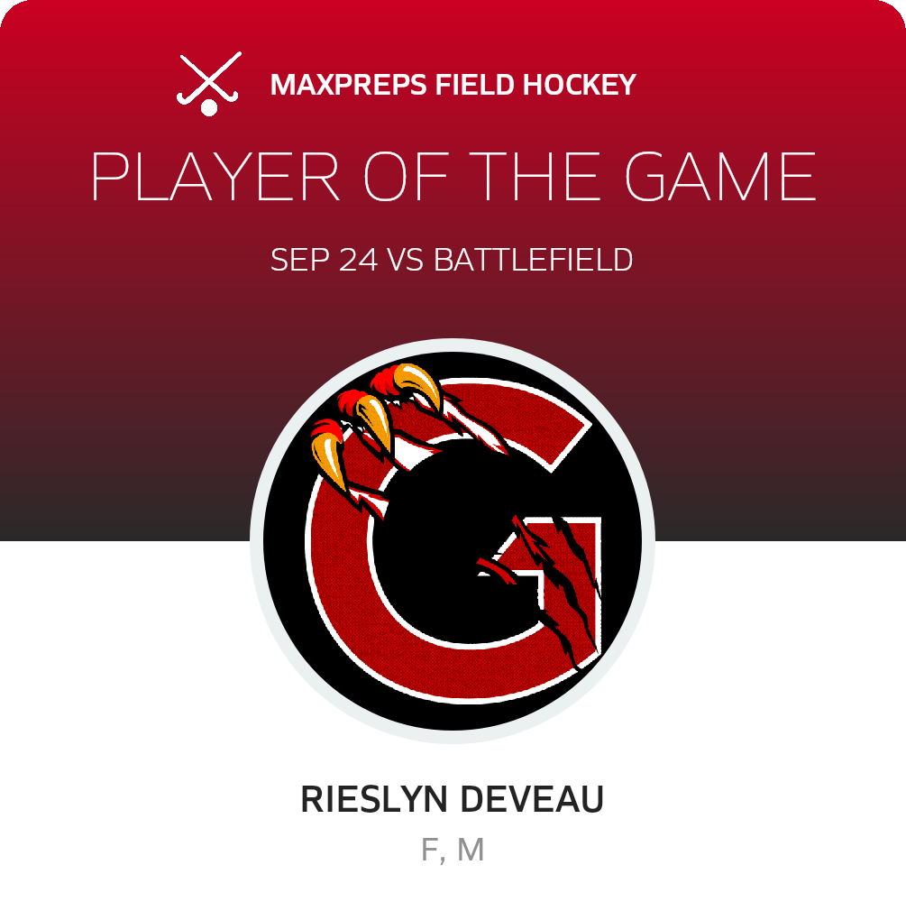 Congratulations to #5 Rieslyn Deveau for being selected the Gainesville Field Hockey Player of the Game.
