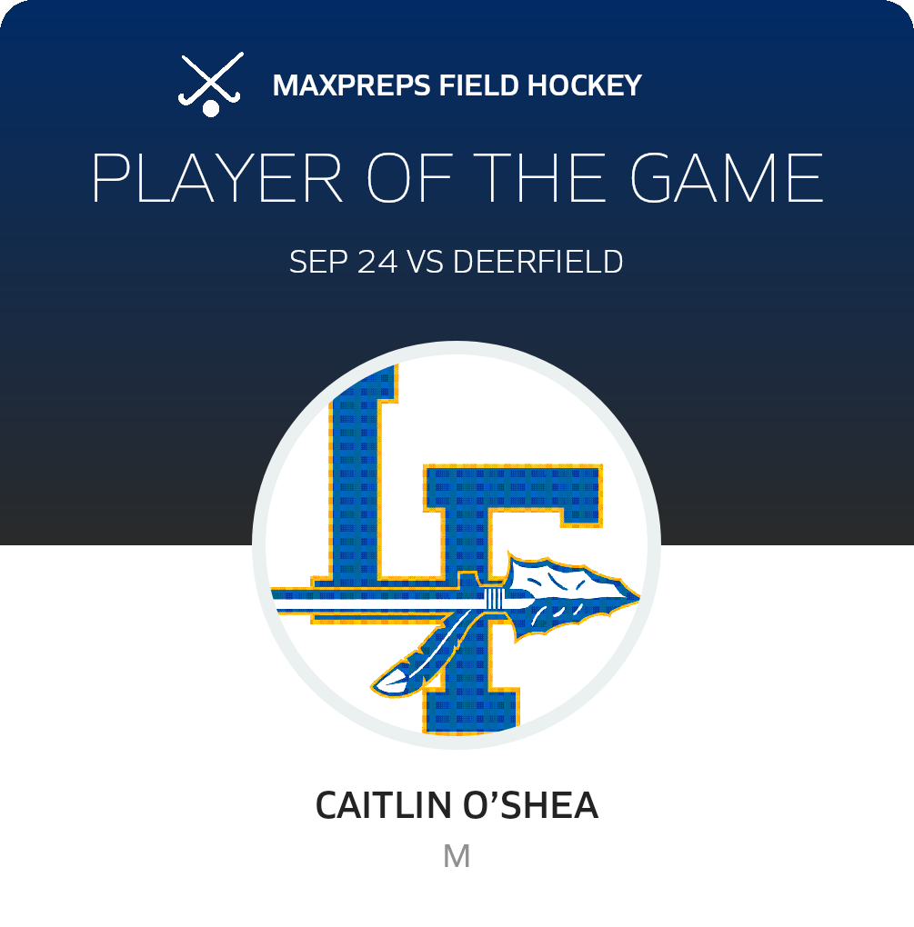 Congratulations to #13 Caitlin O’Shea for being selected the Lake Forest Field Hockey Player of the Game.