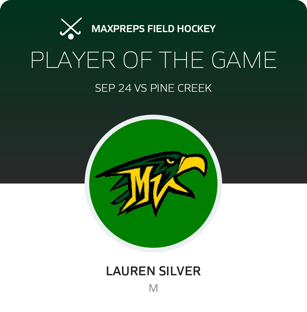 Congratulations to #23 Lauren Silver for being selected the Mountain Vista Field Hockey Player of the Game.