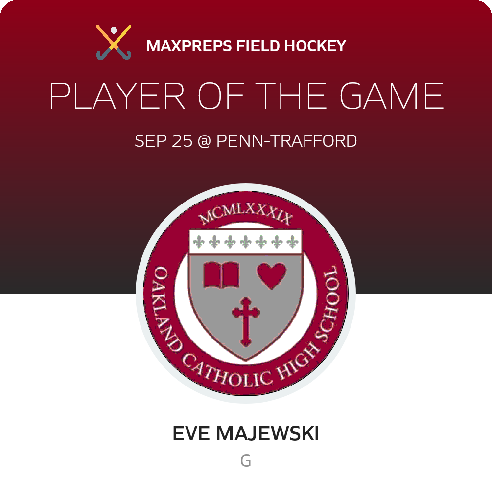 Congratulations to #91 Eve Majewski for being selected the Oakland Catholic Field Hockey Player of the Game.