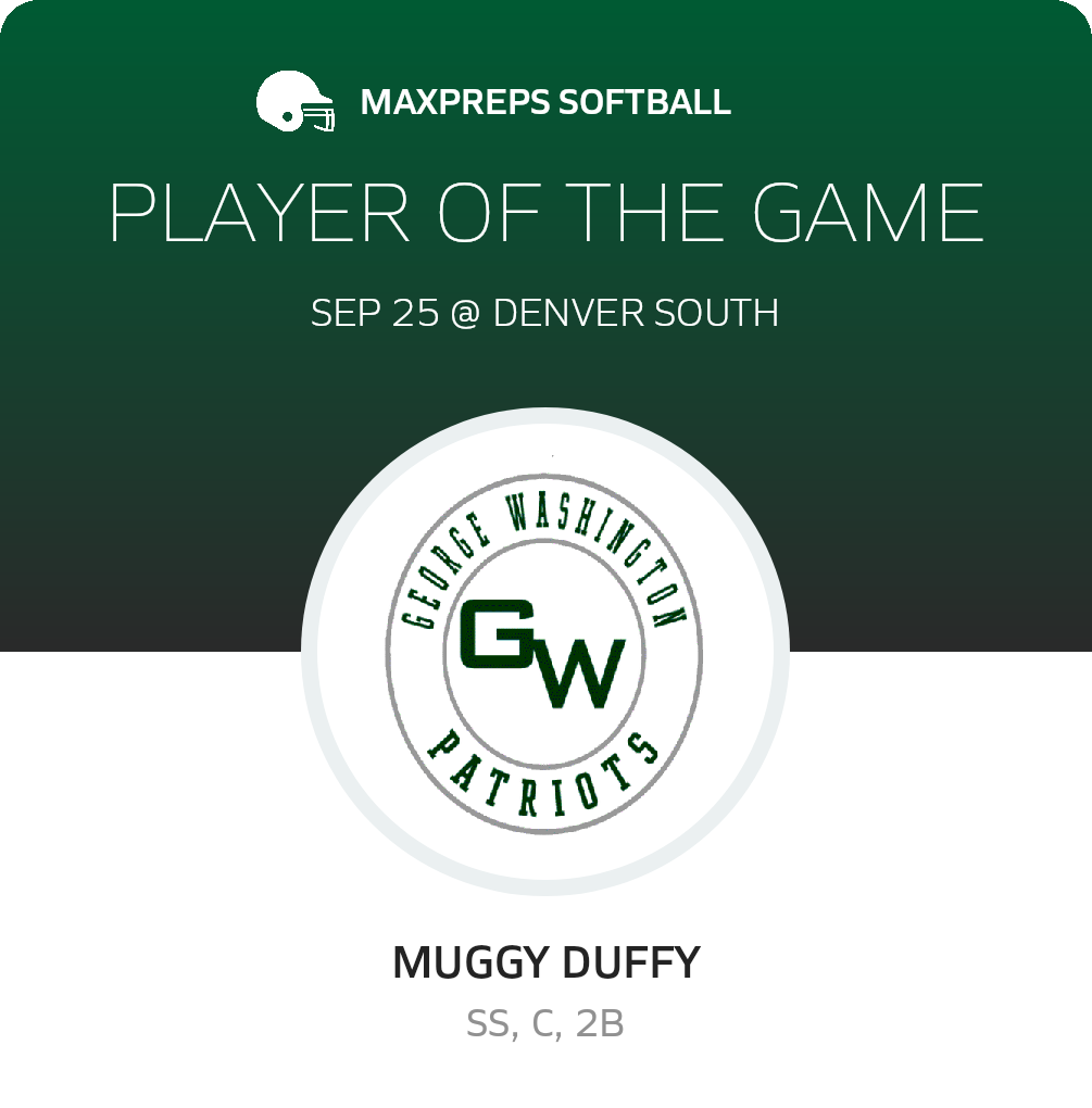 In Thursday's league test, the Denver South Ravens (Denver, CO) softball squad overwhelmed the visiting George Washington Patriots (Denver, CO), by a count of 14-2.