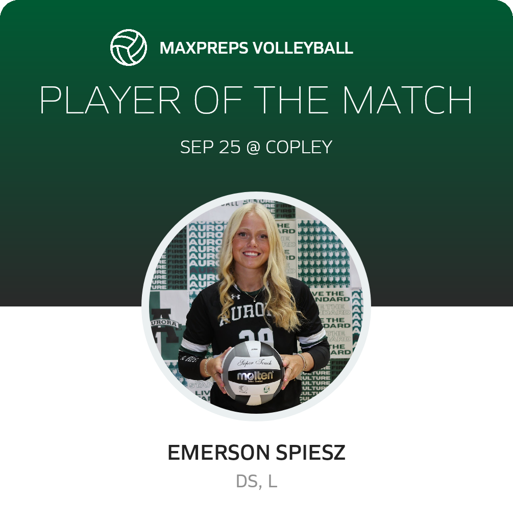 The Copley Indians (Copley, OH) volleyball were victorious over the visiting Aurora Greenmen (Aurora, OH), 3-0 in Thursday's league bout.