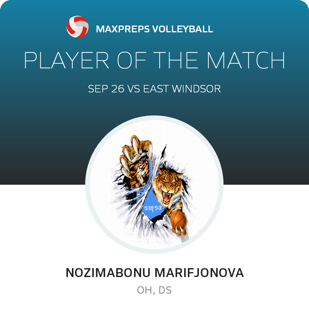 In Monday's league contest, the Sports & Medical Sciences Academy Tigers (Hartford, CT) volleyball squad were winner over the visiting East Windsor Panthers (East Windsor, CT), by a margin of 3-0.