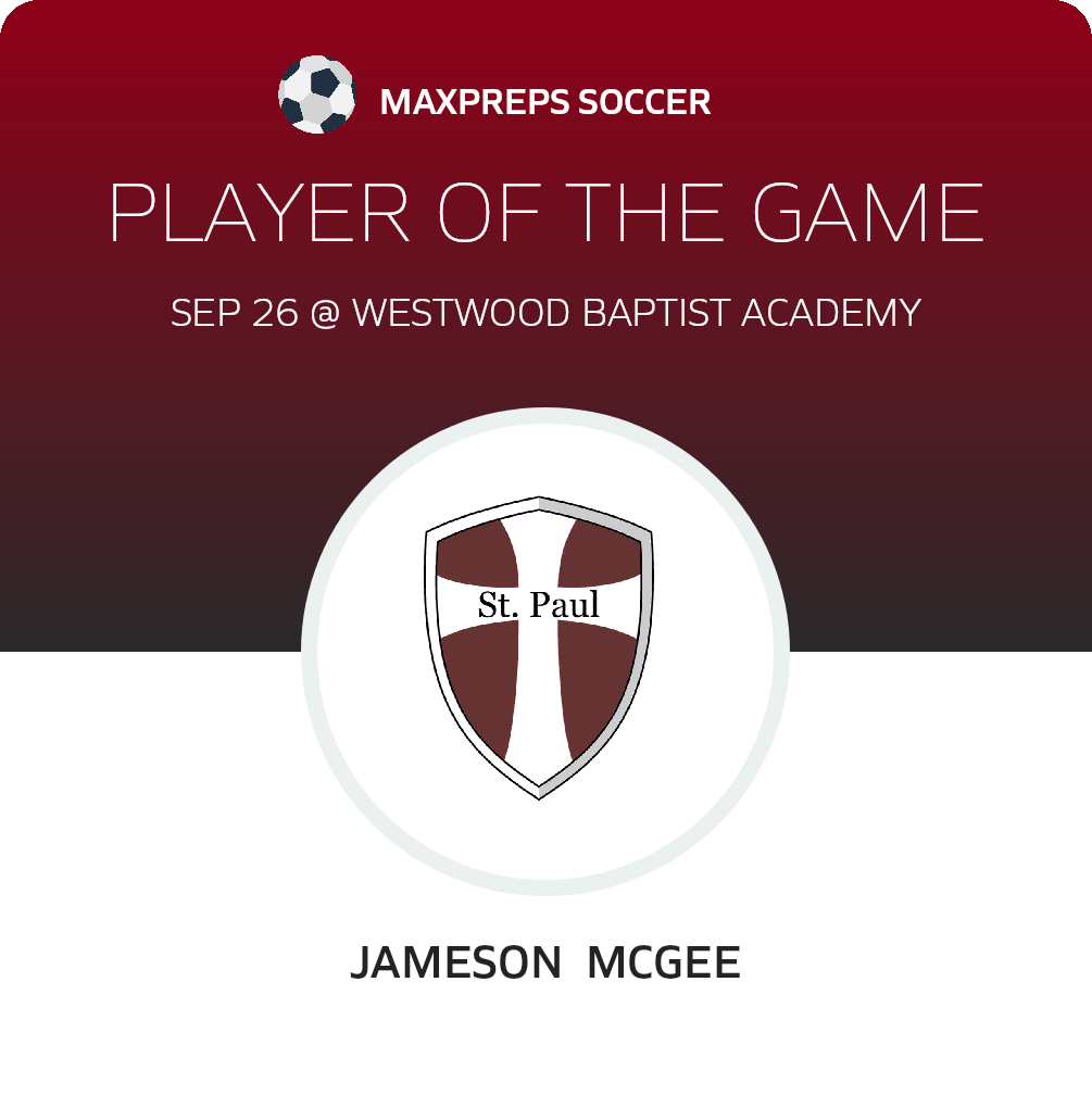 Congratulations to #8 Jaymason McGee for being selected the St. Paul Lutheran Soccer Player of the Match.