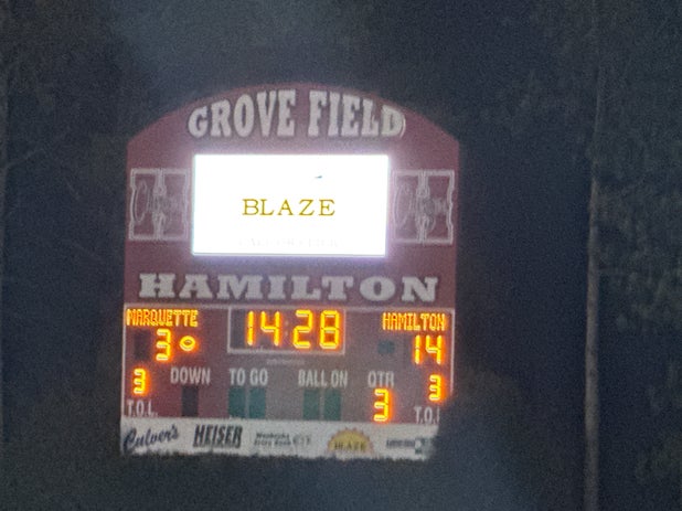 The crowd at Friday's league bout between the Hamilton Chargers (Sussex, WI) and the visiting Marquette University Hilltoppers (Milwaukee, WI), saw Hamilton's football team gain a win over Marquette University by a final score of 28-9.
