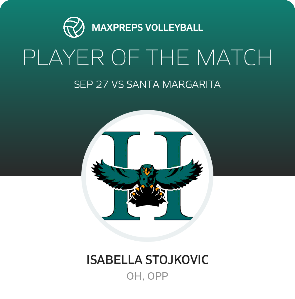 In Saturday's non-league match, the Highland Hawks (Gilbert, AZ) volleyball squad prevailed the visiting Santa Margarita Eagles (Rancho Santa Margarita, CA), by a count of 2-0.